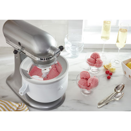 Kitchenaid, fiestaware, breville, cuisinart, vitamix Freeze the bowl attachment for at least 15 hours before using. Tilt the motorhead back and remove the mixing bowl. Carefully pour ice cream mixture into bowl while. Is there an attachment for a kitchenaid ice cream maker?